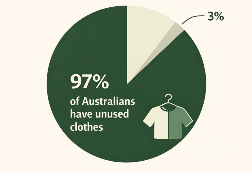 Australians love fashion — but much of what we buy ends up sitting unworn. Recent research shows Australians collectively own an estimated AU$76 billion worth of clothing, with around AU$29 billion tied up in garments that are rarely or never worn.