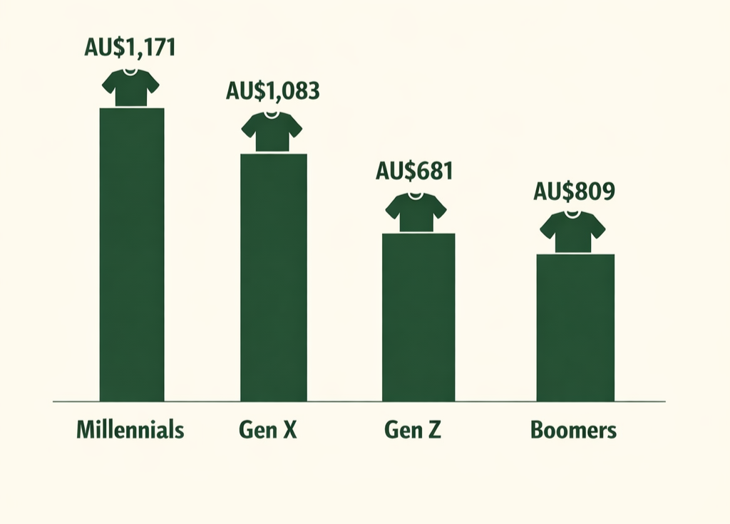 Millennials: ~AU$1,171 in unused clothing